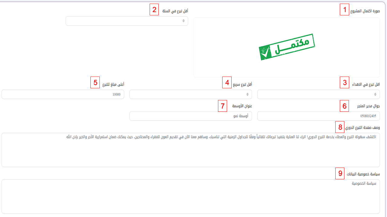 إظهار سلة التبرعات: إظهار سلة التبرعات او اخفاؤها من المتجر