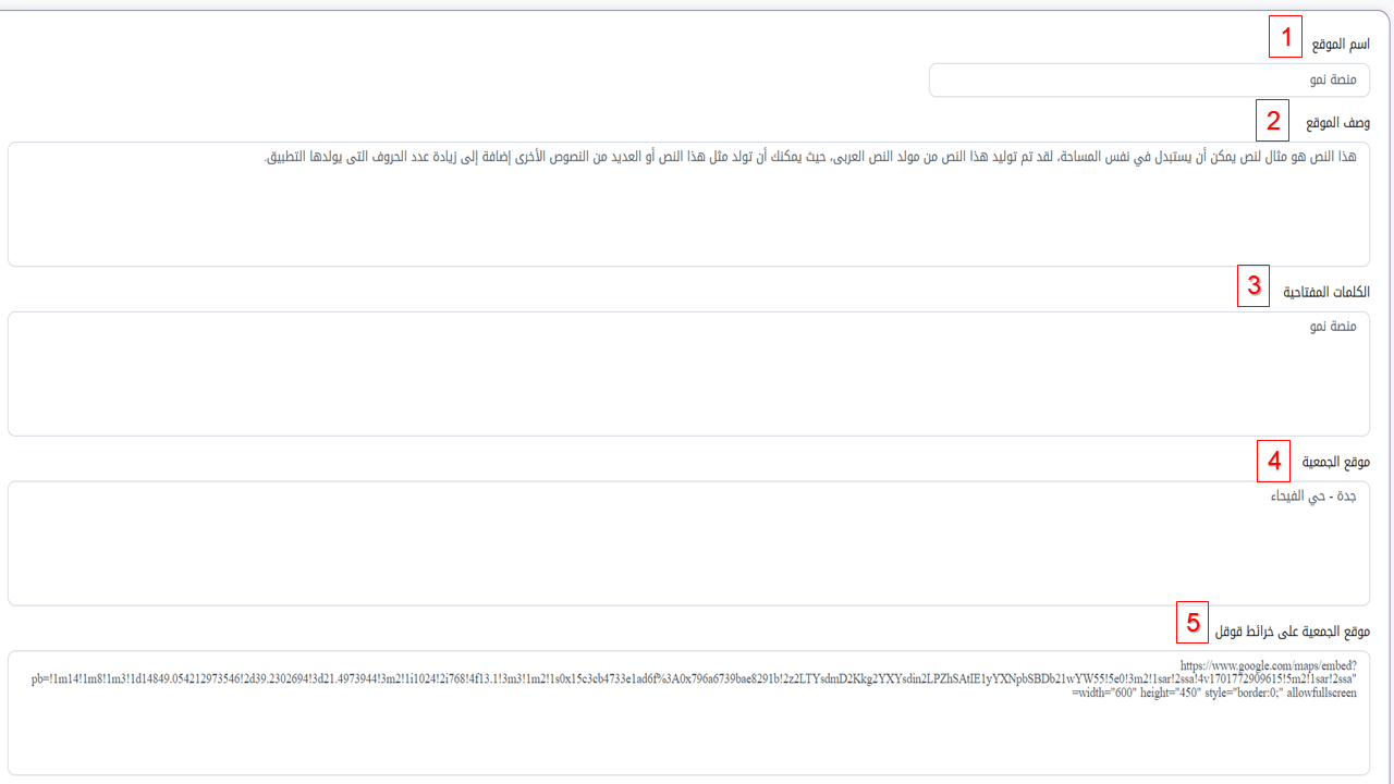 الوصف في اسفل الموقع ( يقصد به النبذة عن الجمعية والتي تظهر في تذييل الموقع اسفل الشعار )