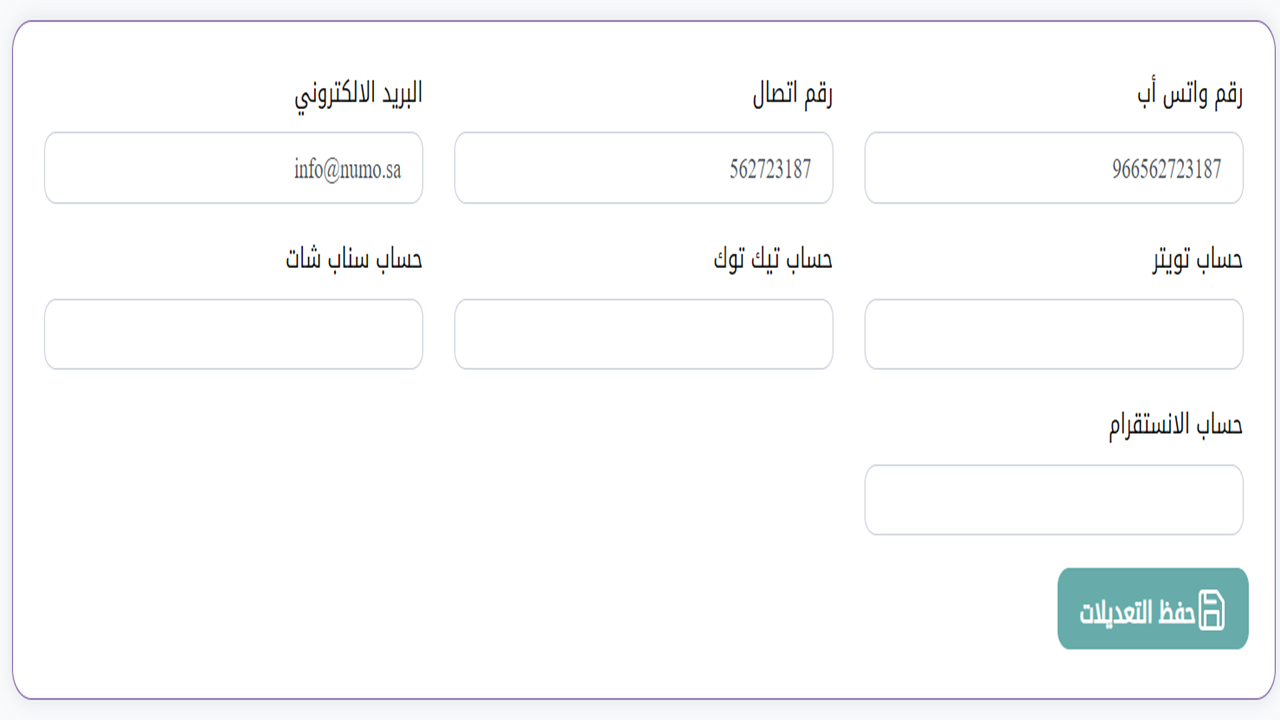 تأكد من كون معلومات التواصل صحيحة كونها ستظهر في صفحة التواصل وتذييل الموقع